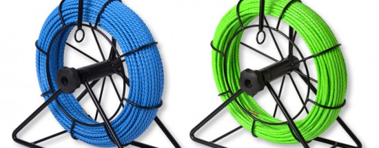 Guías pasacables de diámetro pequeño, (6 mm) y longitudes hasta 100 metros. Adecuados para tubos de diámetro de 40 a 140 mm.